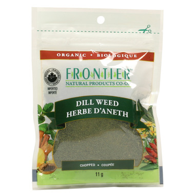 The fresh, subtle flavor of Frontier Natural Products Organic Chopped Dill Weed is an excellent complement to cream soups, salads, mild dips, fish and poultry recipes.