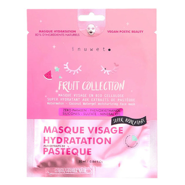 Fruits as much as you want! Here already 1: a sip of water and sun to be beautiful beautiful beautiful, our friend the watermelon. Face mask 100% coconut water (no fabric here but the "deluxe" second skin effect version of organic cellulose) and 100% biodegradable, unicorns don't like it when we pollute our earth! The magic active ingredient: Watermelon seed oil, rich in essential fatty acids, is used to moisturize, regenerate and restructure the skin. Vegan formula, with 82% ingredients of natural origin. Made in Korea.