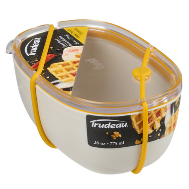 The Trudeau Fuel Snack Bowl is a durable container that fits up to 26-ounces of delicious lunch ideas such as soups, rigatoni pasta dishes or any leftovers you can find in your fridge. Part of the Fuel Dinnerware Collection for adults, the Snack Bowl features the same leak-proof design with a silicone strap and valve closing system so you can pack your snacks knowing that they are sealed tightly. All Fuel containers are microwave safe, simply remove the lid, reheat and enjoy!