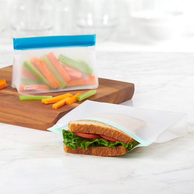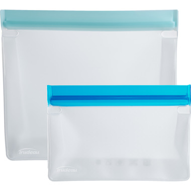 There's no need to keep packing up lunches in wasteful plastic bags, here is a more sustainable option. The Trudeau Reusable Plastic Bags come in a set of two: the smallest size is 15.6 x 11 cm, and the largest is 25.5 x 18.5 cm which means you'll surely find a size that fits all your favorites, from sandwiches to handfuls of nuts or fruit. BPA-free alternatives are made entirely from food-safe compounds, making them a great choice for transporting all your snacks, sandwiches, fruits, and veggies while on the go. You'll also enjoy how lightweight they are, so they won't take up tons of room or feel bulky in your lunchbox. And a double zip closure keeps these from spilling or leaking in your lunch bag, no matter how bumpy the commute to work is! They have a stand-up base for more convenient storage in the fridge, pantry, or even the freezer with a freezer-safe minimum temperature of 4F or -20C. If you've been on the lookout for a more sustainable way to brown bag it, this is it.