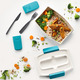 Pack everything you need for a delicious meal with this BPA free Food to Go Container. It comes with a cutlery case containing its very own sturdy fork and knife. The lid clips to stay in place. Bring any meal you want to reheat since the bottom container is microwave safe. If you have a big appetite don't worry this bowl can carry up to 34 oz of food!