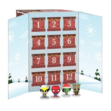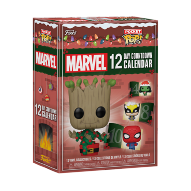 Count down to your favourite holiday, or any special occasion, with the Marvel 12 Day Countdown Calendar! Open the tiny doors to reveal 12 unique Funko Pocket Pops! featuring some of the most iconic super heroes, like Groot, She-Hulk, Wolverine, and Spider-Man. Bring the team together in your Marvel collection with this 12 Day Countdown Calendar. Pocket Pop! collectibles vary in height depending on character.