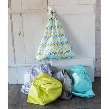 storage solution. This bottom-zippered PUL polyester bag hangs on a