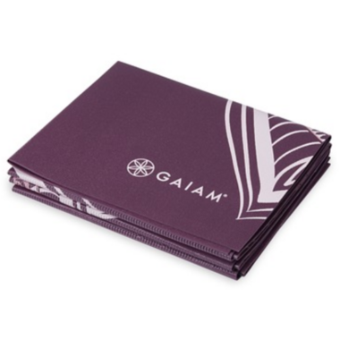 Gaiam's Foldable Yoga Mat is ultra lightweight, highly compact, and super cute. This mat folds flat and easily fits in your carry-on or tote bag, making to and from studio travel easier than ever. With a sticky texture and compatibility, you will stand strong in your Warrior.