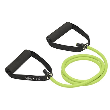 Strengthen the arms, chest, shoulders and back with Gaiam's medium strength resistance cord. Features comfortable foam handles for a non-slip grip, exercise guide and door attachment to increase exercise options.