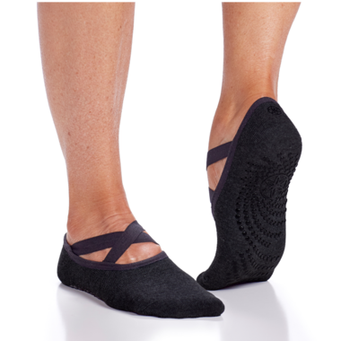 Stay put and grounded in your practice with these grippy yoga barre socks. With a ballet inspired design these no-slip socks are perfect for yoga, barre, pilates, and dance. The full toe coverage gives a better tactile feel while the silicone grips provide a no-slip surface anytime, anywhere. The socks also feature two fashionable and stretchy foot straps for the perfect fit. Staying on whether you’re practising with or without a mat. The grippy yoga barre socks from Gaiam, keeping you in place no matter the pose or the practice.