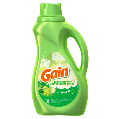 Gain Liquid Fabric Softener helps make your clothing softer while it decreases static and adds more amazing Gain scent. Use with Gain laundry detergent and keep your laundry smelling great even after six weeks. Now in matching scents across Laundry Detergent, Scent Booster Beads and Dryer Sheets. Regular Washer and HE Compatible.