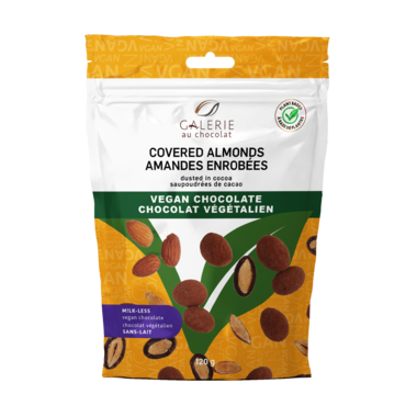 Indulge in Galerie au Chocolat's Vegan Milk-less Chocolate Covered Almonds. This chocolate is rich, smooth and as decadent as you would expect from Canada's most loved premium chocolate-maker! But there are no dairy ingredients in this creamy "milk chocolate." Chick Pea Protein is the secret ingredient.