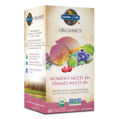 Organics Women’s Multi 40+ is brimming with 20 vitamins and minerals. It also offers organic black cohosh, organic tomato, organic turmeric, plus iodine and selenium.