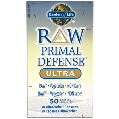 RAW™ Primal Defense® Ultra provides a potent Vegetarian source of Live Probiotics – 50 Billion CFU – which help support intestinal/gastrointestinal health and promote a favorable gut flora. It is a RAW probiotic with a diverse blend of 6 Lactobacilli and Bifidobacteria strains.