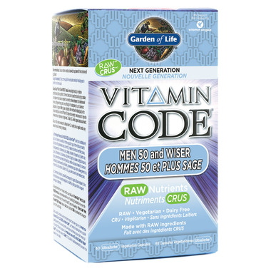 Go beyond vitamins and minerals and feed your body with Vitamin Code Men’s 50 and WISER Formula, a comprehensive multi-nutrient specifically formulated to help meet the unique nutritional needs of men with at least 50 years of knowledge. Vitamin Code Men’s 50 and WISER Formula contains individually cultivated RAW sourced nutrients, to support men's health and vitality.