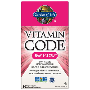 Garden of Life's new and improved Raw B12TM is a comprehensive, whole food vitamin B12 formula made with RAW Food-Created NutrientsTM, live probiotics and enzymes. Blended in a base of 23 fruits and vegetables with supporting vitamins, Vitamin CodeTM Raw B-12TM capsules are Certified Vegan, Non-GMO Project Verified, Star K Kosher and NSF Certified Gluten-Free
