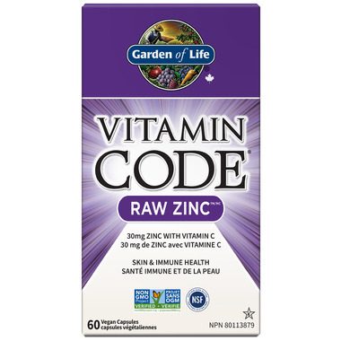Zinc plus 60mg of Vitamin C and twenty-three powdered organically grown fruits and vegetables. Raw means no high heat, synthetic binders or fillers, artificial flavors, sweeteners, colors or additives commonly used in tablets. Vitamin Code Raw Zinc supports immune system health, bones, hair, nail and skin health, and has digestive enzymes to support healthy digestion.