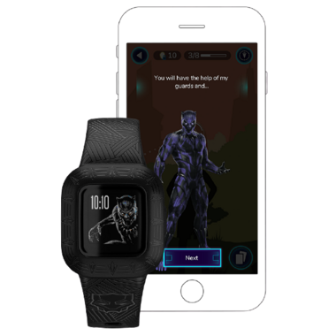Adventure awaits your kiddos with the Black Panther Vívofit jr. 3 fitness tracker for kids. Featuring a colorful display and design with princess-inspired watch face options, this kid-tough, swim-friendly fitness tracker has a user replaceable battery that gets up to 1 year of battery life. With it, kids can uncover Disney Princess app adventures and mini games by completing 60 minutes of daily activity. Parents can use the app on their compatible smartphone to monitor steps, sleep and active minutes, manage and assign chores, set timers and even give rewards to positively reinforce good behavior. Motivate kids to keep moving with new timed activities, and even challenge friends to Toe-to-Toe™ step challenges. And for a little peace of mind, quickly see your child’s emergency contact phone number right on Vívofit jr. 3.