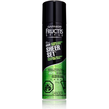 Garnier Fructis Style Hold & Flex Sheer Extreme Force Hair Spray has Micro-Resinite dual-technology that combines plant resins and micro-minerals, providing a strong, yet breathable hold. Ultra-fine diffusion ensures a weightless, natural finish. Its water-free and humidity-resistant properties provide ultimate, lasting control, letting you show off your style… nonstop! The light, sparkling fruit fragrance will leave your hair smelling fresh and vibrant.