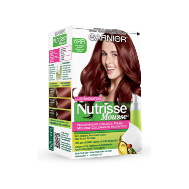 Try Garnier Nutrisse Mousse: the 1st foam to nourish while it colours. The zero compromise formula offers multi-dimensional colour results, 100% grey coverage, and an easy to use, no mess application. Enriched with avocado, olive, and shea oils, its rich conditioner leaves hair silky, soft and healthy-looking.