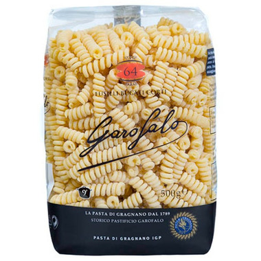 Their shape is a tribute to tradition that has been renewed thanks to the best technologies, Garofalo Fusilli Bucati Corti are curled spirals of bronze-drawn pasta capable of enveloping condiments.