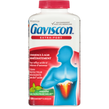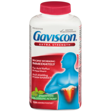 Gaviscon Extra Strength Chewable Foamtabs begins working immediately. Provides day & night-time relief of heartburn, acid reflux and GERD (Gastro-Esophageal Reflux Disease) symptoms. Forms a protective foam barrier that blocks acid reflux for hours.