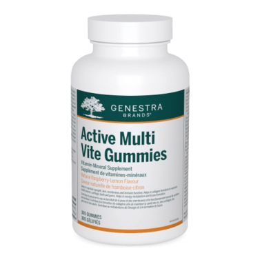 Active Multi Vite Gummies provide a concentrated combination of 17 vitamins and minerals in a great-tasting format with added choline and an organic fruit blend. Many Canadians do not consume adequate amounts of essential vitamins and minerals. This formula is packed with high levels of nutrients to help promote optimal nutritional status, including two forms of vitamin A, all eight B vitamins, antioxidants vitamins C and E, bone-supporting vitamins D and K, and the minerals zinc, iodine and chromium. Collectively, this formula promotes immune function, antioxidant defence, energy and healthy glucose metabolism, strong bones and teeth, eyesight and night vision, and healthy hair, skin and nails. Choline is also included to provide valuable support to the liver. Additionally, each berry-shaped gummy contains only 0.5 g of sugar from natural sweeteners and isomalto-oligosaccharides, a low-glycemic plant-based fibre naturally found in fermented foods and honey. Free of gelatin as well as artificial colours and flavours, Active Multi Vite Gummies provide a convenient and delicious way of increasing the daily intake of bioavailable vitamins and minerals.