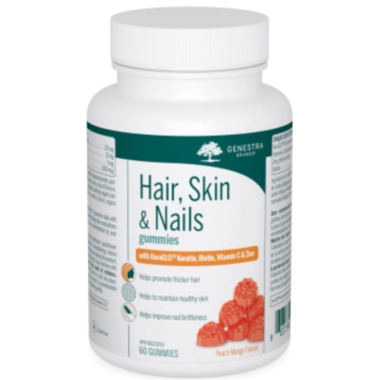 Great-tasting gummy for improved overall hair, skin & nail quality. Offers 125 mg of KeraGLO hydrolyzed keratin per gummy. Maintains healthy skin and promotes stronger, thicker hair. Improves nail strength and reduces brittleness and splitting. Includes key building blocks such as biotin, vitamin C, and zinc. Contains no artificial colours or flavours, and less than 0.5 g total sugars per gummy. Delicious, natural peach-mango flavoured gummy.