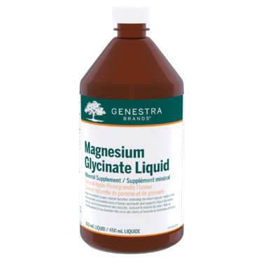 Genestra Magnesium Glycinate Liquid is a magnesium glycinate formulation with a natural apple-pomegranate flavour.