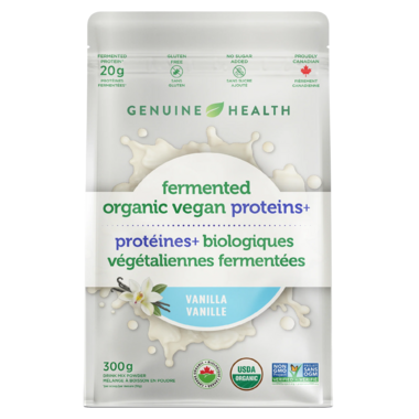 Achieve your protein needs with this fully fermented organic vegan proteins+, to fuel your goals without slowing you down. Each serving contains 20g of fermented plant protein, including all 9 essential amino acids making it a complete protein. Genuine Health includes seven unique ingredients for a comprehensive vegan blend. Smooth and mixes well in an easy-to-take drink.
