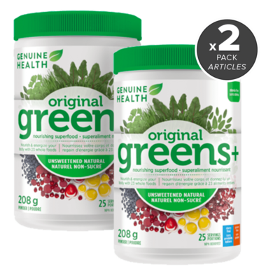 - 2x Genuine Health Greens+ Unsweeteneded Natural, 208g