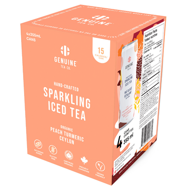 Genuine Tea Hand-crafted Sparkling Iced Tea organic peach turmeric ceylon.
