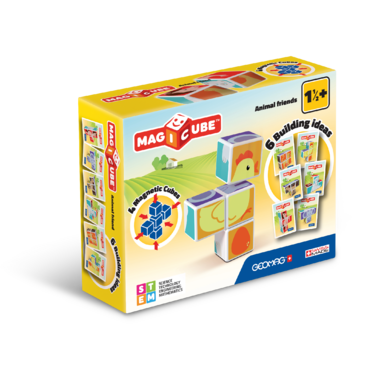 Watch your toddler create Animal Friends by using magnetic Magicubes that connect on each side! They will learn to be build a chicken, horse, dog, cat, elephant, and bear! Or, create their own Animal and bring them to life with Magicube! Geomag's award winning line of products help children of all ages develop imagination and curiosity through the science of magnetic construction. This set contains 4 magnetic blocks with six different building ideas and task cards. Magicubes connect on all sides that help with the development of creativity and fine motor skills.