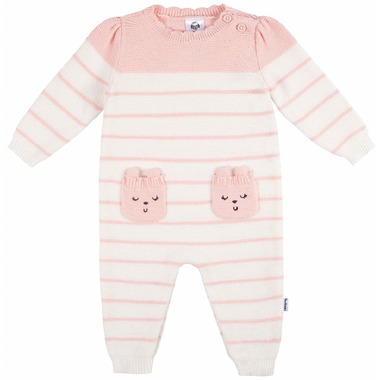 Soft and plush, this romper is made from knitted fabric with ribbed neck, ankles, and wrists for a warm and comfortable fit. Made from a stretchy material and designed with an easy pullover top and leg snaps for easy diaper changes, this outfit is perfect active play for baby girls and toddlers girls constantly on the move. To complete an adorable look, the romper has two front pockets with embroidered bear faces and cute little ears. These essentials have been independently certified with STANDARD 100 by OEKO-TEX so that you don't have to worry about harmful substances in your baby's wardrobe. This pack includes one romper.