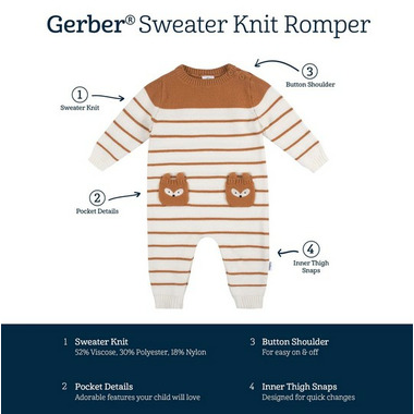 Gerber Baby Sweater Knit Romper Fox