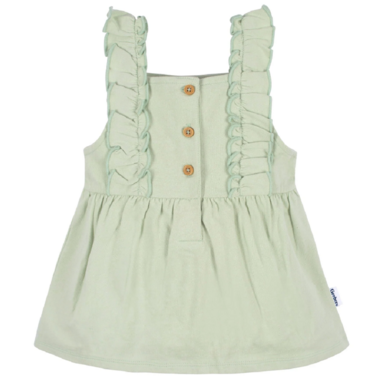 Adorable shoulder ruffles add a unique touch to the jumper, while the cotton/polyester fabric blend works to protect against the cold. Our essentials have been independently certified with STANDARD 100 by OEKO-TEX so that you don't have to worry about harmful substances in your baby's wardrobe. This two piece set includes one green jumper and one bodysuit with matching floral pattern.