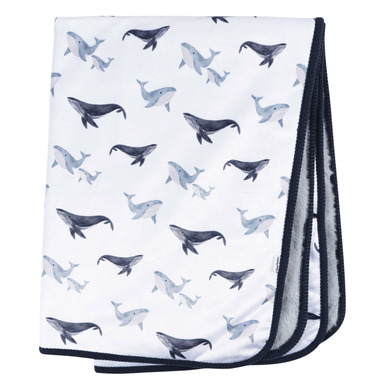 This charming 2-ply baby blanket is an essential addition for your little one's comfort! Crafted from super soft materials, its designed to cradle your baby in coziness, whether for snuggles or play time. With an endearing whale pattern against a classic blue and white color, it has a cute and classic look to love. Machine washable for easy maintenance, it retains a gentle touch through countless cycles., this generously sized blanket is both stylish and soothing.