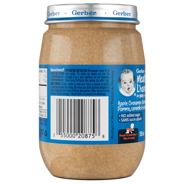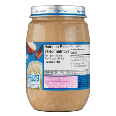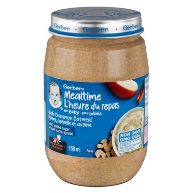 Introduce your baby to the goodness of oatmeal and fruit with GERBER Mealtime Apple Cinnamon Oatmeal Pure. A yummy breakfast at home or on-the-go, it's made with real fruit. Non-GMO with no added sugar, it is tiny taste bud approved!
