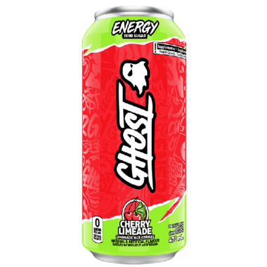 Ghost Energy Drink Cherry Limeade with zero sugar and natural caffeine.