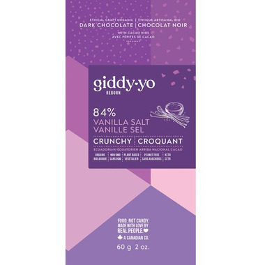 Giddy Yo Organic 84% Crunchy Vanilla Salt Dark Chocolate Bar