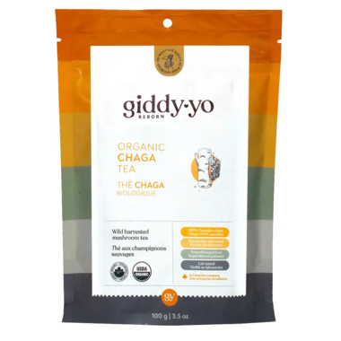 Giddy Yo Organic Chaga Tea is wild harvested mushroom tea. 100% Canadian chaga, sustainably harvested and lab tested.