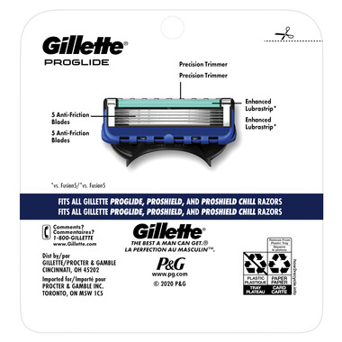 The Gillette Fusion5 ProGlide razor blade refills for men provides the iconic Gillette shave precision with comfort and style. These five-bladed men's razor blade refills, features a larger* lubrication strip which smoothly guides the razor while against the skin. This enhanced Lubrastrip also fades when you are no longer getting an optimal shave. The blade cartridge features five, ultra sharp, anti-friction blades for a shave you can barely feel. Their simple yet effective blade stabilization maintains optimal blade spacing for comfort while allowing the blades to adjust to the contours of your face. The Precision Trimmer on the back is perfect for styling facial hair, especially in these hard-to-reach areas such as under the nose and the sideburns. Combined with a Microfin Guard to gently smooth your skin before the blades and a microcomb that helps guide your hair to the blades. The Gillette ProGlide men’s razor provides a smooth, close shave that lasts. Concerned your Gillette handle won't fit? All Gillette Fusion5 ProGlide razor blades fit all Gillette 5-blade razor handles (excluding GilletteLabs). Plus, enjoy long-lasting value with each ProGlide blade refill providing up to 30 shaves.**