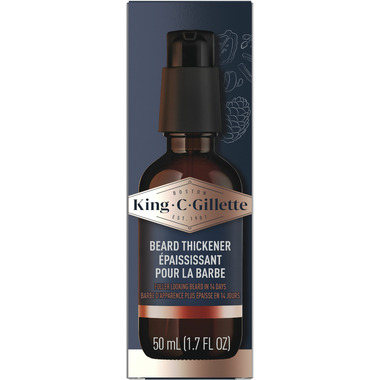 King C. Gillette Beard Thickener is the holy grail to a thicker, much fuller beard. With a considerable cumulative thickening effect, you can begin to see changes in just 14 days. Our beard thickening formula thickens your beard from the root to the tip of your hair. Its lightweight formula makes it easy to spread and work through your beard ensuring that every beard hair is covered from the root, up. It also works to prevent hair breakage which in turn helps maintain a fuller-looking beard.