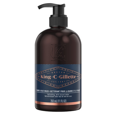 This refreshing King C. Gillette beard and face wash for men is infused with coconut water, argan oil and avocado oil leaving your beard and skin feeling fresh and clean every day. Formulated mild cleansers and menthol giving a light cooling sensation that leaves the skin feeling refreshed and comfortable. Works into a rich lather and rinses away quickly and easily. Cleanses, refreshes and conditions your facial hair, and leaves your skin feeling fresh.