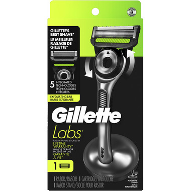 GilletteLabs with Exfoliating Bar by Gillette is the world’s first razor with exfoliating technology built into the handle—for effortless shaving in one efficient stroke. The innovative men’s razor makes shaving fast and effortless by removing dirt and debris before the blades pass for a smooth shave that's quick and easy. The razor handle is built with precision engineering and the handle is backed by lifetime warranty*. 2D FlexDisc technology contours to your face to ensure comfort and contact with every stroke. Featuring Gillette's best razor blades, this razor for men is designed for a quick and easy shave. When you’re finished shaving, put your razors into its premium magnetic stand that keeps your razor clean, dry and ready to use. Use with GilletteLabs razor blade refills which are compatible with both the GilletteLabs with Exfoliating Bar and the GilletteLabs Heated Razor gift set. Choose between a refreshing and exfoliating shave or the soothing warmth of a hot towel shave. The perfect gift for men, this razor represents the next evolution in male shaving.