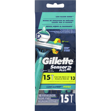 A great shave is within your grasp with this Gillette Sensor2 Plus Pivoting Head Men's Disposable Razor featuring a pivoting razor head, lubrastrip for glide and a soft ultragrip handle for great control. All Sensor2 disposable razors have twin blades that deliver a close, comfortable shave and are coated with chromium to make them last longer, so you don't have to reach for a new one every time you shave. When it comes to blades, two is simply better than one.
