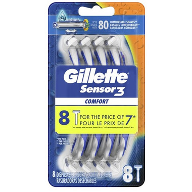Looking for a men's disposable razor that can get you up to 10 comfortable shaves? Gillette's Sensor3 Comfort disposable razors do just that thanks to its 3 chromium-coated, skin sensing blades and a 40 degree pivoting head that automatically adjusts to the skins surface to give a close, smooth and comfortable shave.