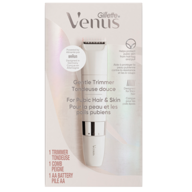 The Venus for Pubic Hair & Skin Gentle Trimmer is designed to complete the lineup of tools to offer all key methods women use to care for pubic hair and skin.