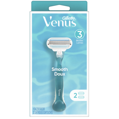 Gillette Venus razors for women are designed with a woman's body in mind. From handles designed for a comfortable grip to pivoting heads that contour to curves, Venus razors are designed to help reveal smooth skin. The Venus Smooth women's razors are the first 3 bladed razors specifically designed for women. Featuring 3 curve-hugging blades surrounded by protective, elastomer comfort cushions smoothing skin for a quick and straightforward shave with results you can rely on. The pivoting head responds to subtle changes in your body's contours. The razor blades also feature a blue indicator strip that fades away to tell you when you are no longer getting the optimal shave. Based on shaving twice per week, each razor blade refill will last for up to 30 days of smooth shaves. Shave hair quickly and effectively. Shave right, not more. Did you know that any Venus blade refill fits any Venus razor handle (except Simply Venus and Venus Pubic Hair Razor) The handle is designed to last so you only need to change your blades.