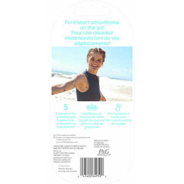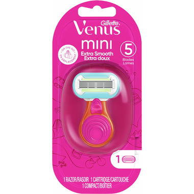 Venus Extra Smooth On-The-Go women's razors come with a mini handle and travel case for on-the-go use.