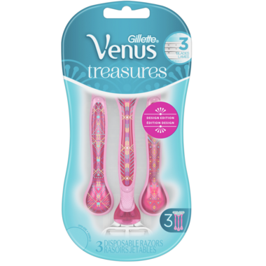 Venus's 3 pack of treasures pink disposable razors.
