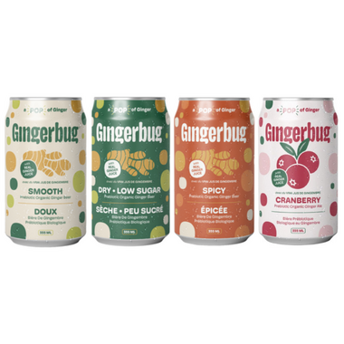 - Gingerbug Prebiotic Organic Cranberry Ginger Ale, 355mL