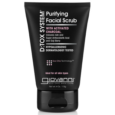 Giovanni D:TOX System Purifying Facial Scrub is recommended for all skin types to cleanse and help detoxify your face. This sulfate-free mild formula is enhanced with powerful Volcanic Ash and Activated Charcoal that gently scrubs out impurities including dirt, sweat and makeup without over-drying or causing irritation. Super-antioxidants Acai and Goji Berry refresh skin with nourishment, leaving your face feeling deeply cleansed and polished with a hydrating glow.