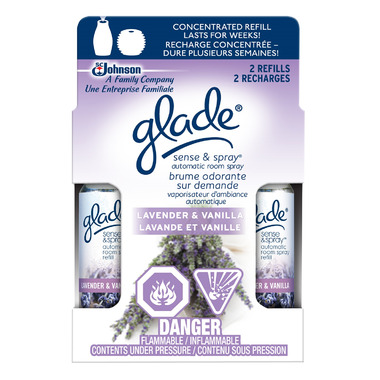lavender and warm vanilla. Each refill is made to fit any of the Glade® Sense & Spray® holder designs.